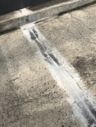 PROBLEM: Ramp joint has failed. Water was getting into the joint and leaking out either on one side against the building or on the other side over the ramp to below level. Where the joint was leaking against the building, the blockwork is believed to be hollow and as such the water has then entered the building and came into the building at the stairwell.